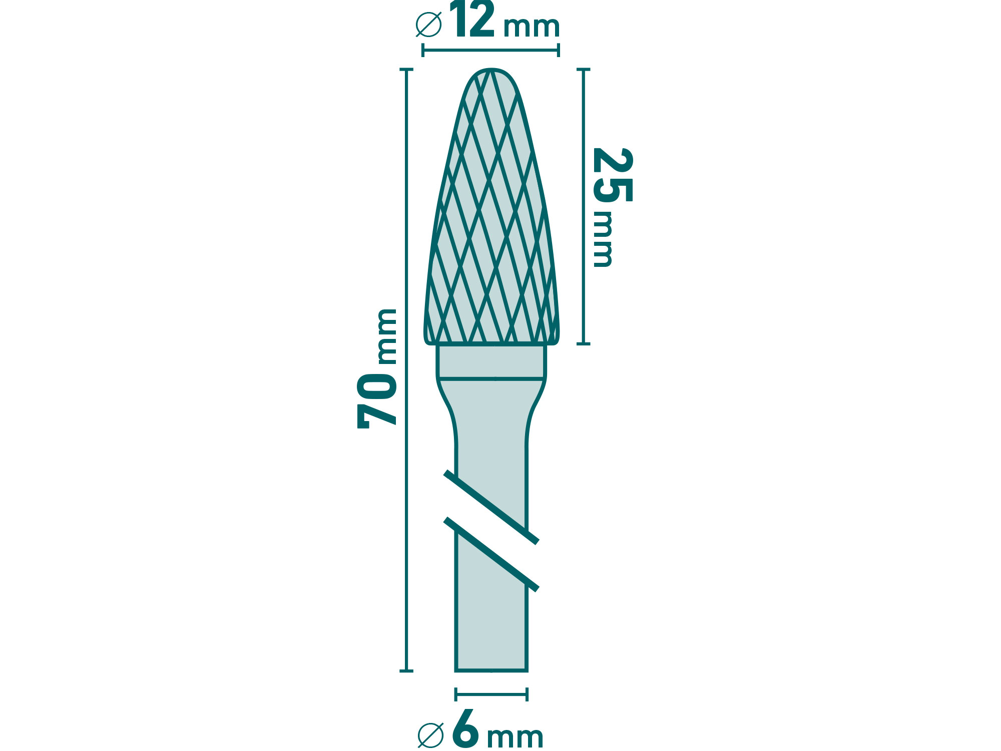 Carbide Burr, Round Tree, Dia.12x25mm / shank 6mm