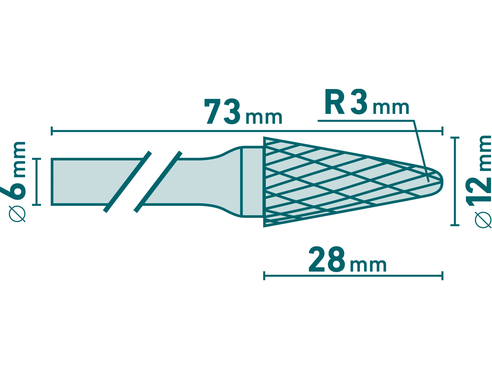 technical parameters: Dia.12x28mm / Shank 6mm, Total Length 73mm