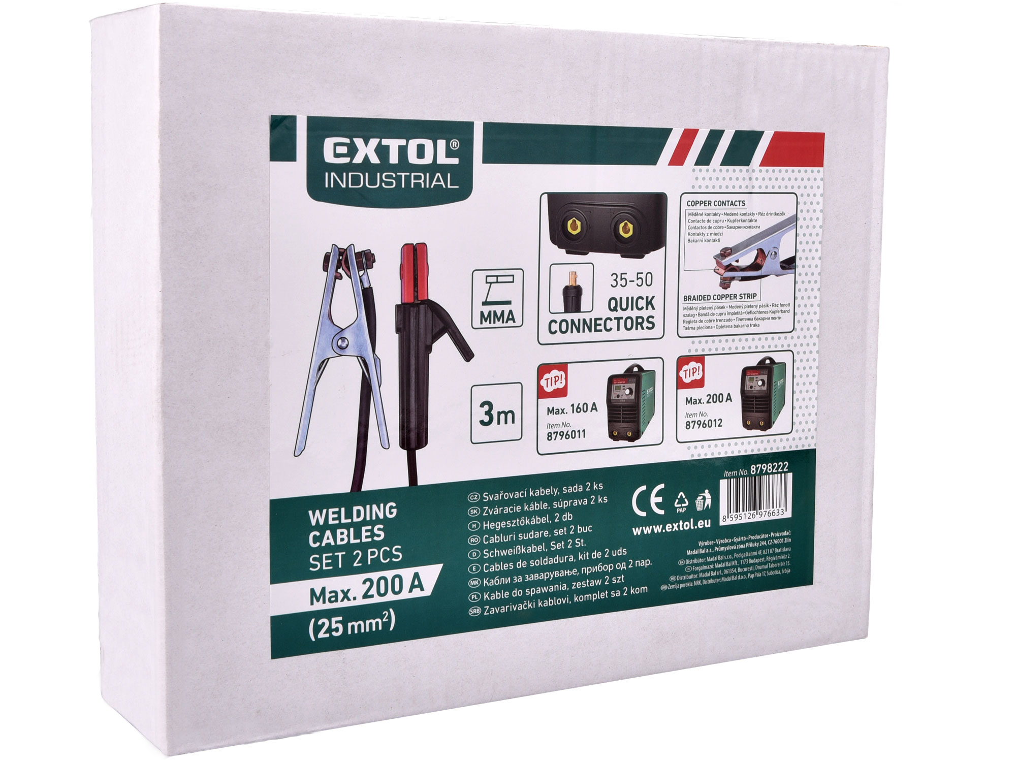 additional parameter: for welding up to 200A, 3m rubber welding cable with 200A brass pliers, 3m rubber grounding cable with 200A grounding clamp