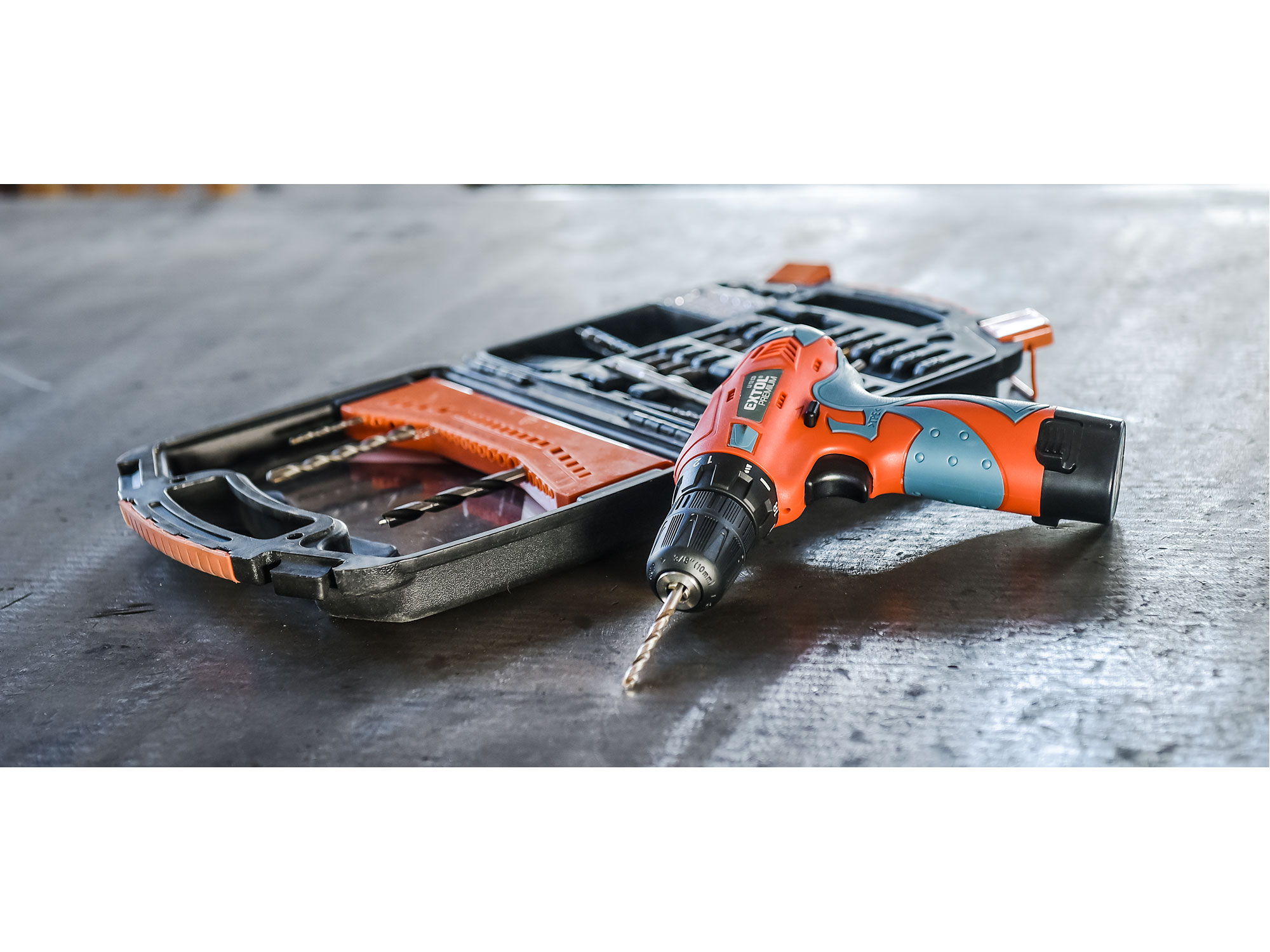 The light and powerful two-speed drill screwdriver in an ultra-compact size is ideal for medium-heavy drilling and screwdriving in metal and wood. Thanks to the Li-ion battery, the screwdriver can be recharged at any time without reducing the battery capacity.