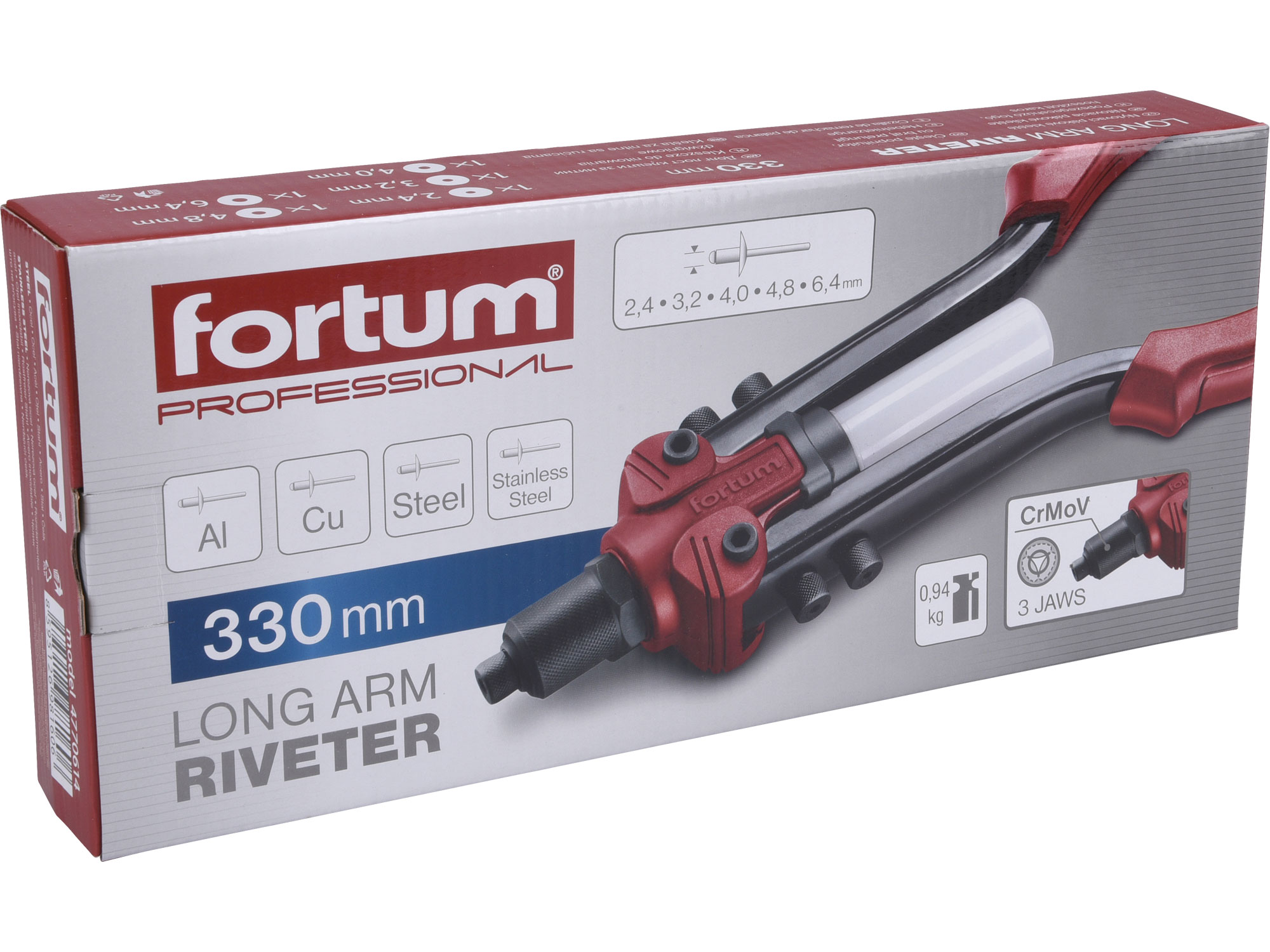 technical parameters: 330mm arms, 2.4 - 6.4mm rivet mandrel sizes